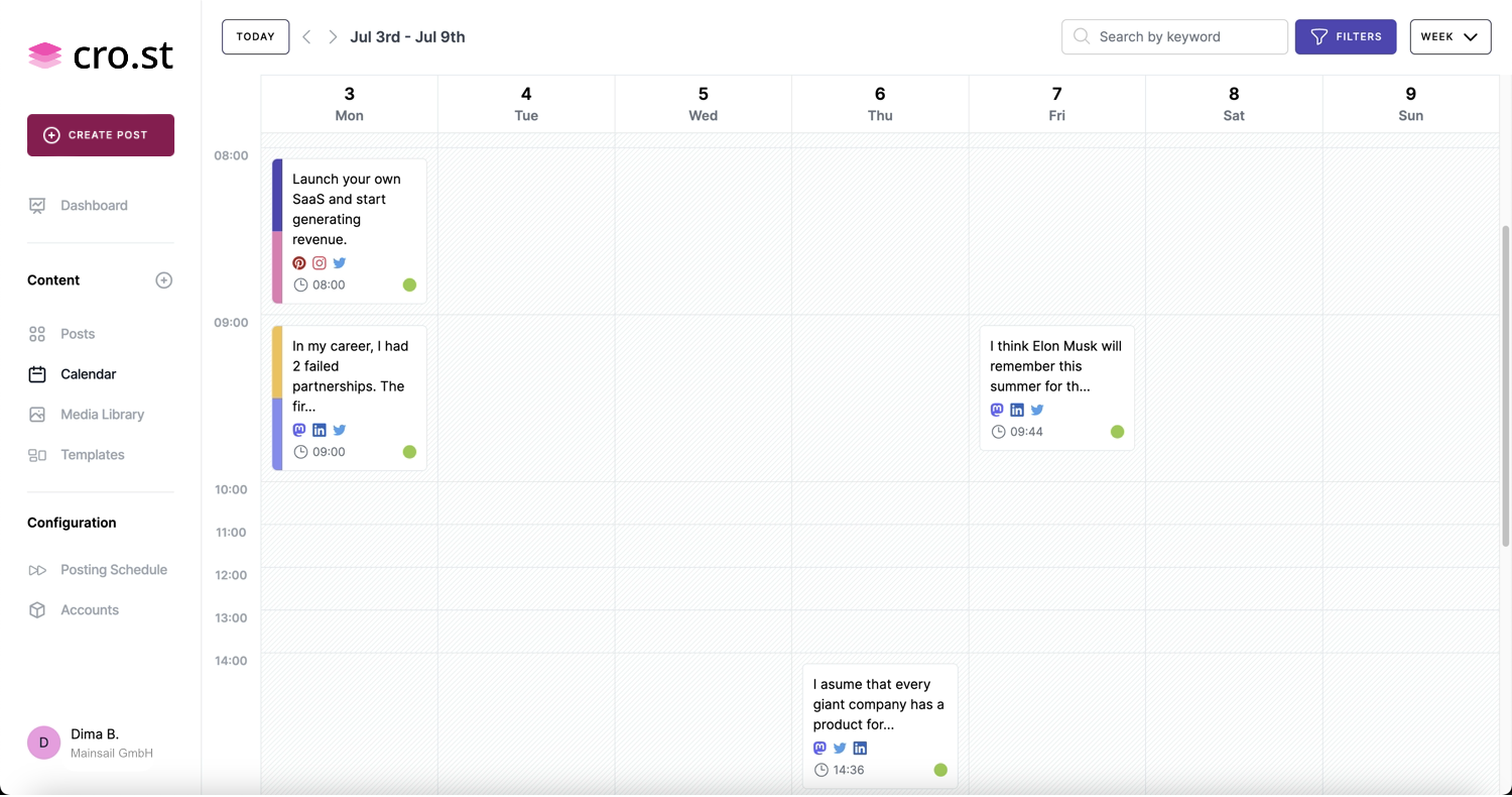 The calendar helps streamline your work management by displaying and organizing posts on the calendar..