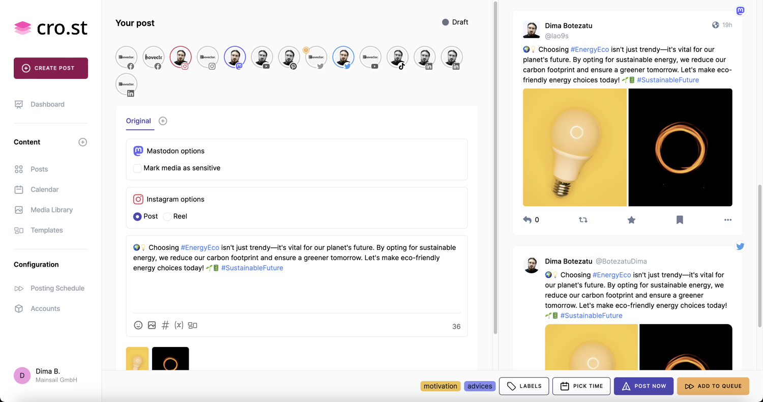 Easily tailor your posts to the specific format and requirements of each social media channel for optimal results.
